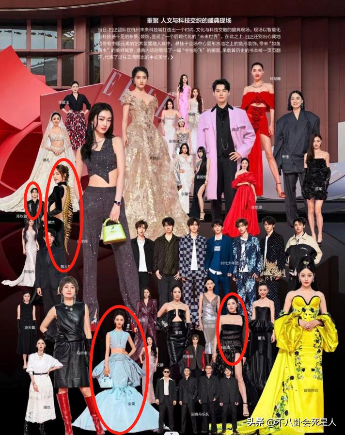 不過這種明星集體出動的活動,也少不了咖位大小的比拼,這次ELLE風尚大典舉辦成功後,官方就發佈了一張全明星的海報圖,裏面的排版大有講究,咖位的高低、真火還是虛火,從藝人的位置、大小一目瞭然。