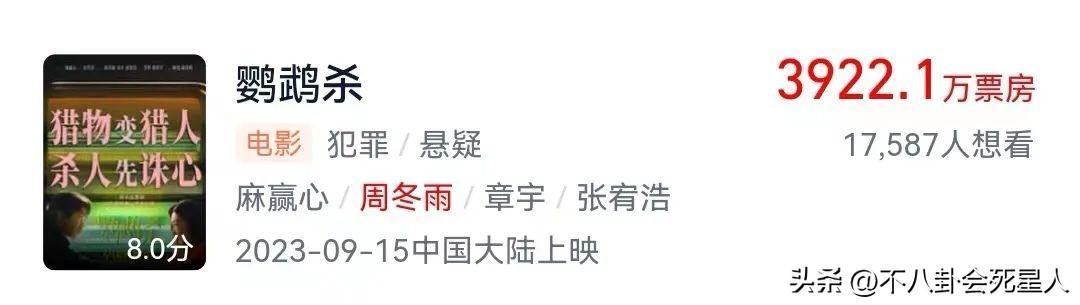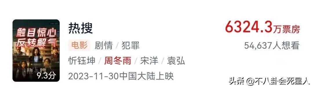 今年對周冬雨來說並不太妙,由她主演的《燃冬》《鸚鵡殺》《熱搜》票房全都不過億,可謂是實現了“三連撲”。