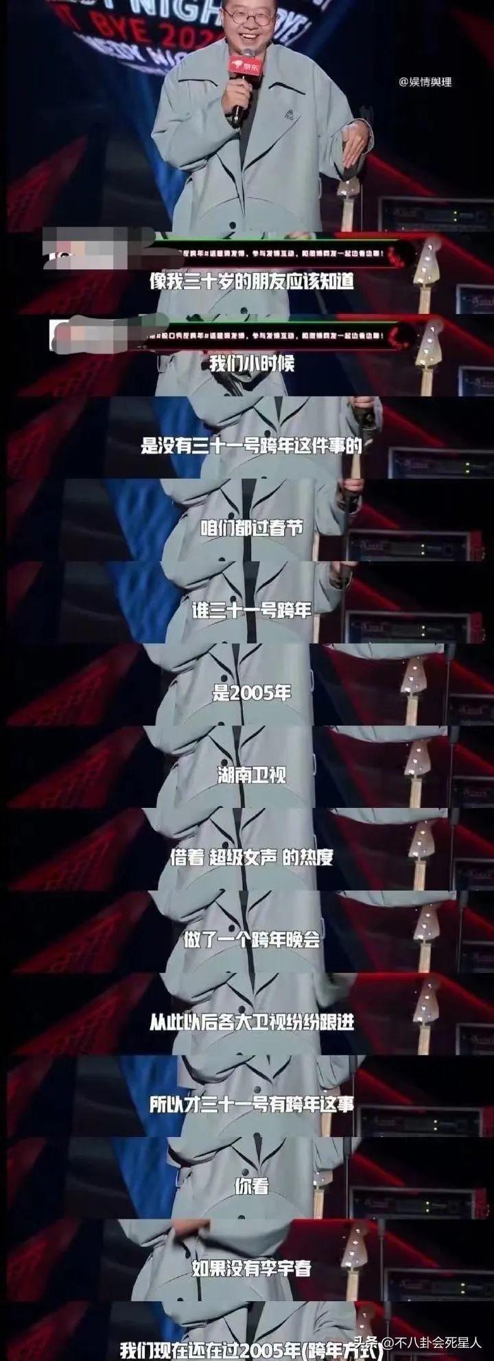 今年的跨年演唱會,李宇春依舊在零點時壓軸出場,這已經是她連續壓軸的第19年了,因爲跨年演唱會就是她所開啓的,當年李宇春參加《超女》總決賽奪冠夜收視率飆升,因此湖南衛視才創造了跨年演唱會,其他衛視也跟着效仿。