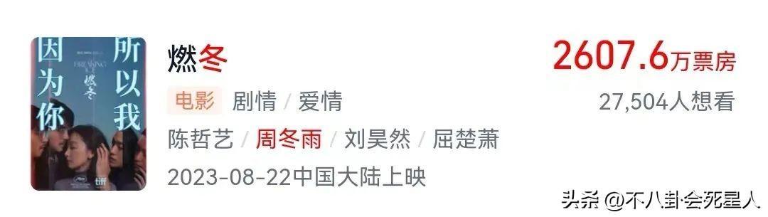 特別是她與劉昊然、屈楚蕭主演的《燃冬》更是口碑翻車,受到了羣嘲,“三人行”的電影在七夕節上映,也難怪大衆不買賬了。