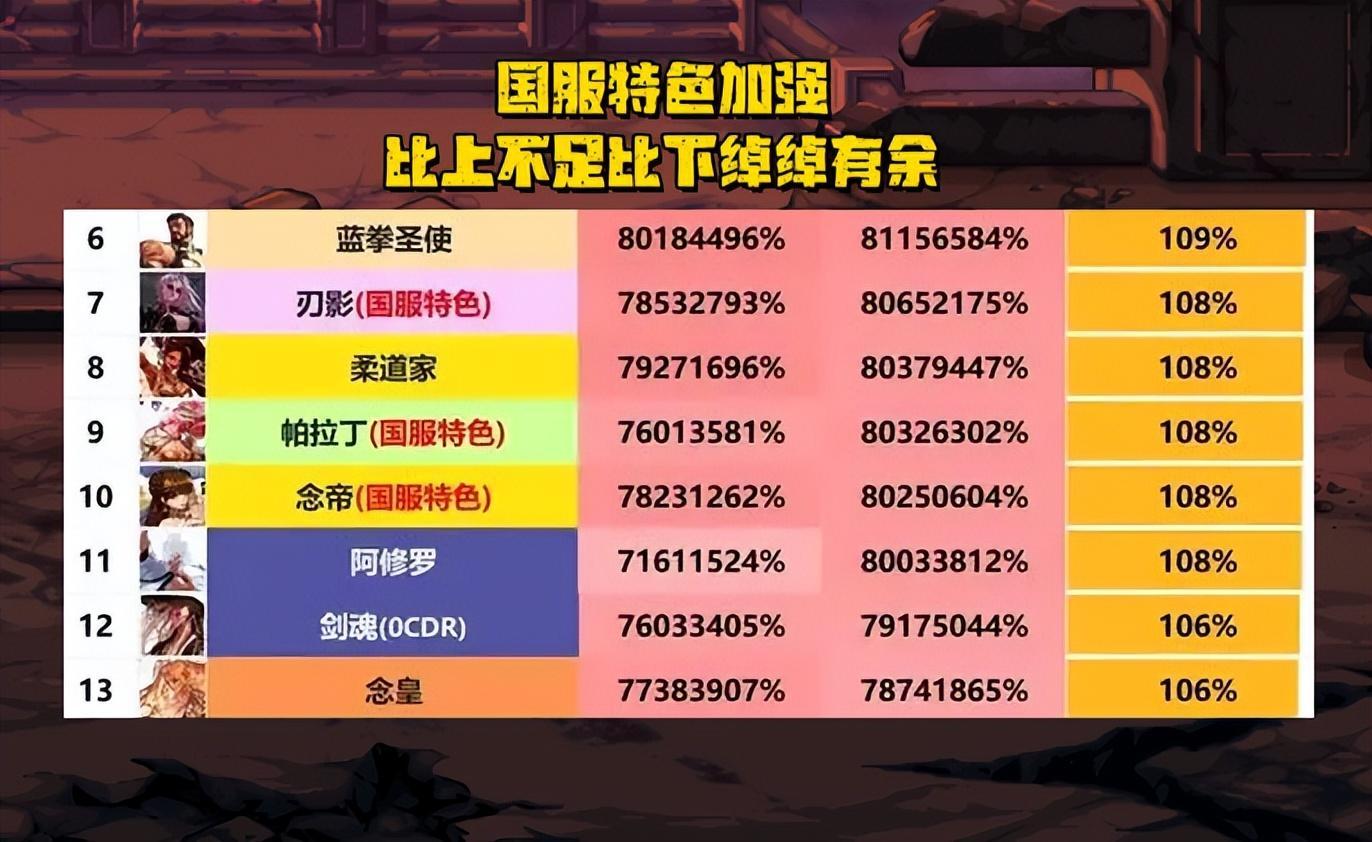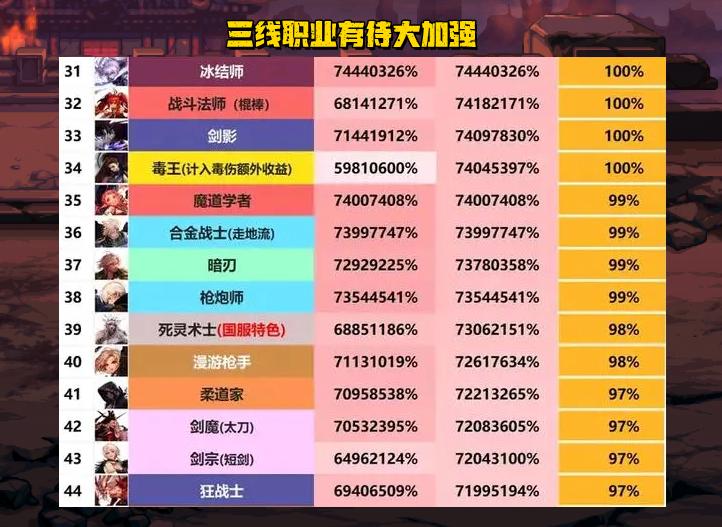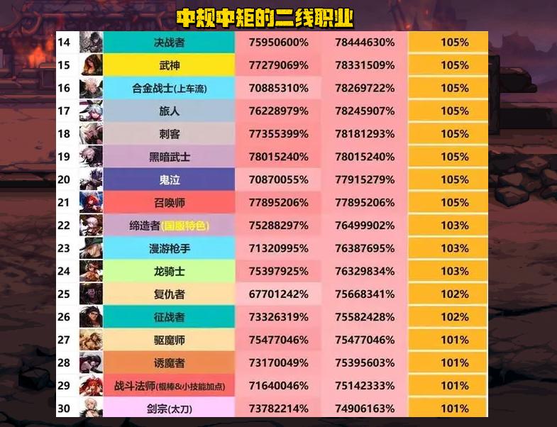 這部分職業就算是中規中矩的表現了,雖然談不上優秀,但至少也沒有拖後腿,戰勝了半數職業,只要打造過關,那也能輕鬆縱橫阿拉德大陸。