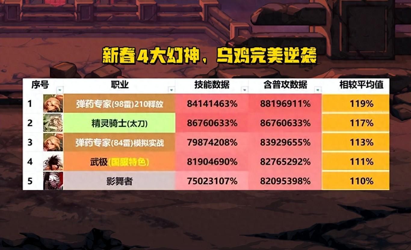 DNF:1月份全職業排名出爐!烏雞成爲新幻神,紅眼哥被三連擊