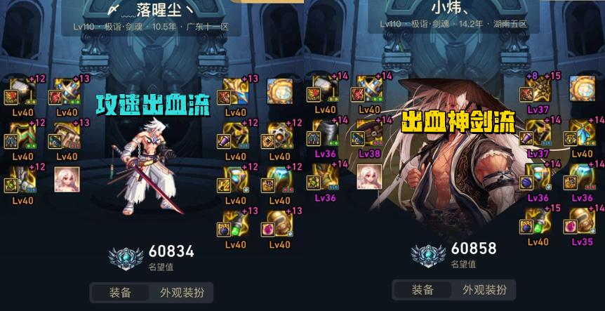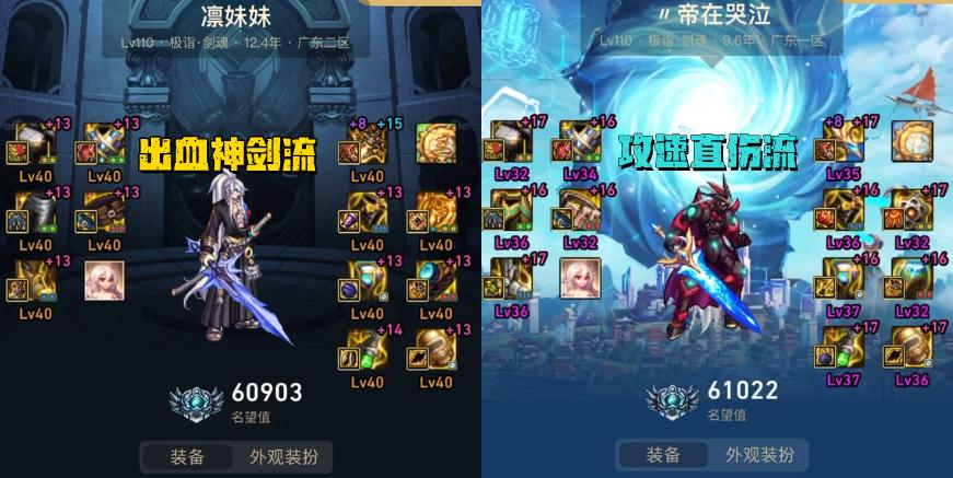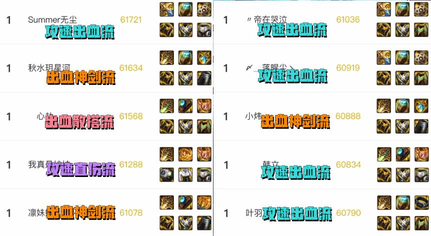 總體來說,國服目前排名前十的劍魂玩家中,主要有3大新流派盛行,分別是“3位出血神劍流+1位出血散搭流+1位攻速直傷流”,這些都是神界版本新開發傷害更高的搭配;