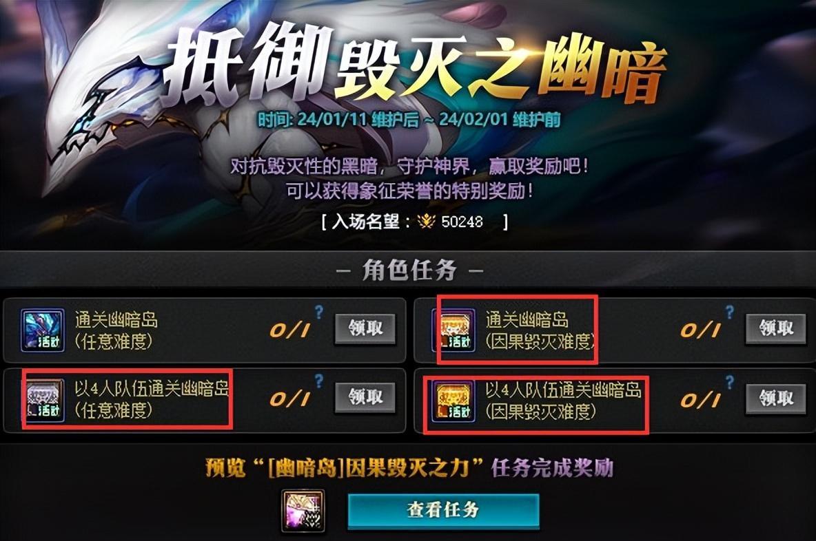 “4人組隊通關幽暗島任意模式”,可獲得2個“鎖1晶體”;