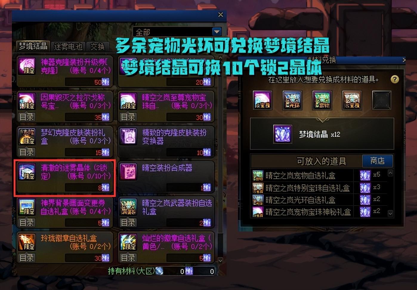 不過夢境結晶需要用新春寵物禮盒、光環禮盒、寶珠禮盒兌換才能獲得,除非拉滿一兩輪的土豪大佬,否則就不推薦了。