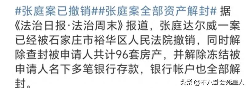 之前張庭夫婦經歷資產被封一事,但前不久該案已經被撤銷,其名下的96套房產解封,有網友就說他們夫婦又能繼續在國內賺錢了。