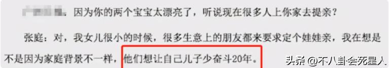 而且她還誇下海口,直言家中的保險櫃中裝滿了錢,說有人來家中提娃娃親,也是想讓自己的兒子少奮鬥20年,可見張庭對於自己的身家相當自信。