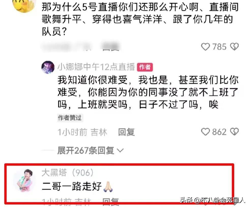 團隊裏的“大黑塔”還在下面留言,“二哥一路走好”。