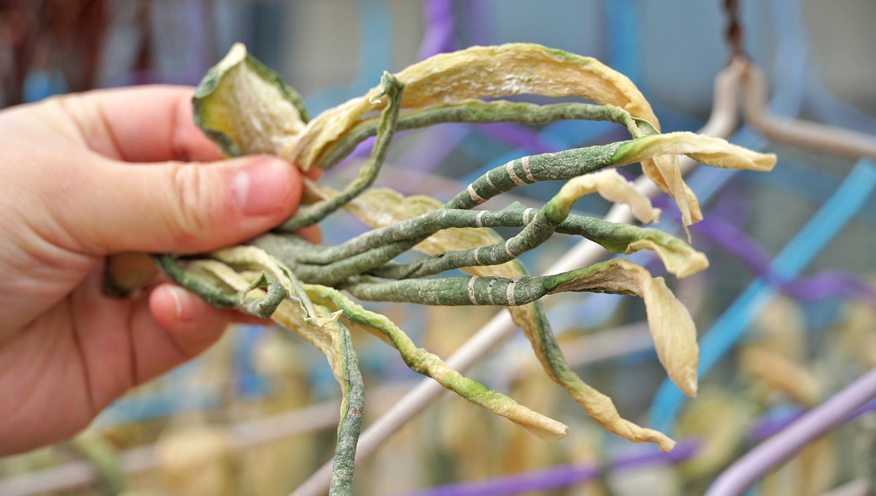 像這樣摸起來柔軟乾爽,一點水分都沒有那就是曬好了,收起來就可以保存了,