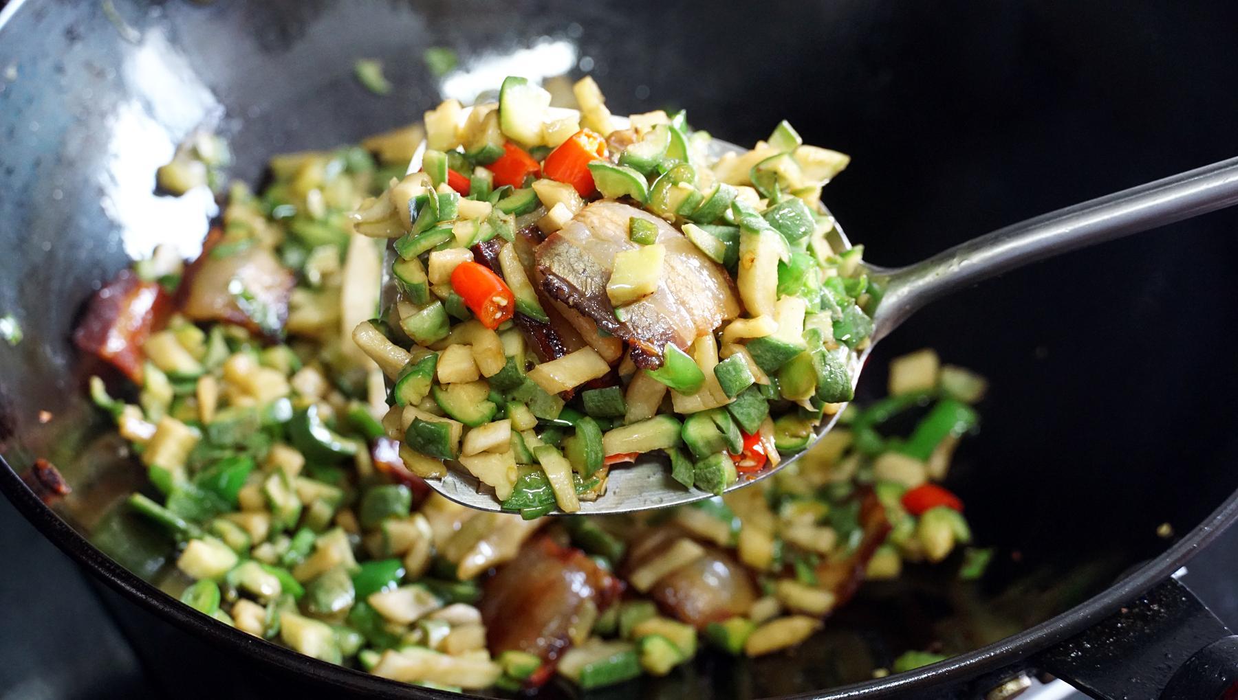 3、直接炒就用放點臘肉煸香,然後和土辣椒一起炒,香辣下飯,特別的香。