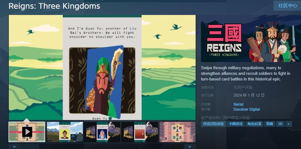 英國知名卡牌策略遊戲工作室Nerial前年推出的《王權》系列作品《王權:三國》,將於12日在Steam和Switch平臺發售。