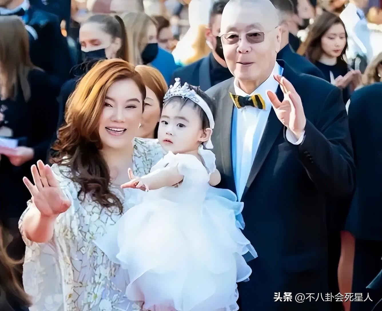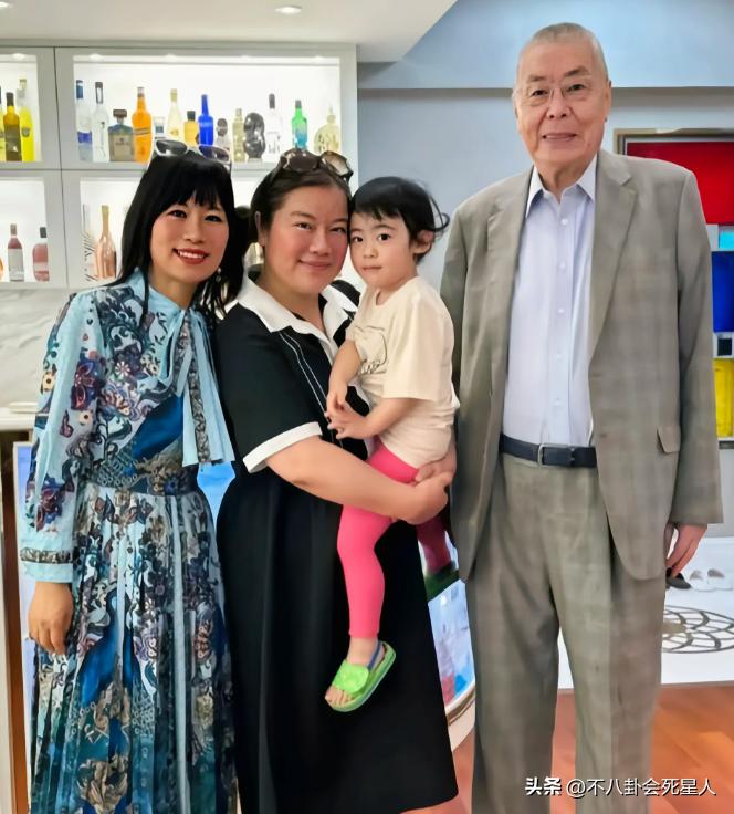 在合照中,84歲的劉詩昆身穿西裝,站得筆直,臉色紅潤,看起來精神氣十足,他的妻子孫穎穿着黑色長裙,生產後的身材還沒來得及恢復,懷中還抱着三歲的女兒蓓蓓。