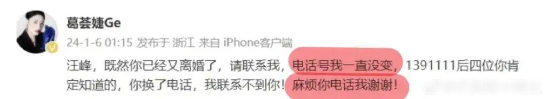 葛薈婕的這番話,信息量有點大,關於她深夜喊話的事,情況是這樣的,在1月6日,她發文稱“汪峯,既然你已經又離婚了,請聯繫我,號碼沒變”。