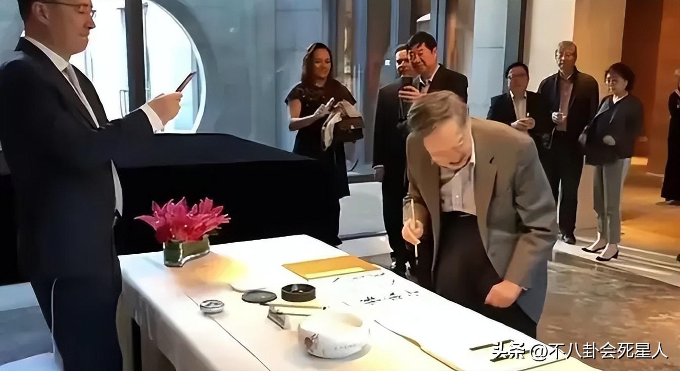 此次20週年紀念,楊振寧還專門提筆寫下了書法作品贈與翁帆,翁帆穿着黑色長裙,顯得非常有氣質。