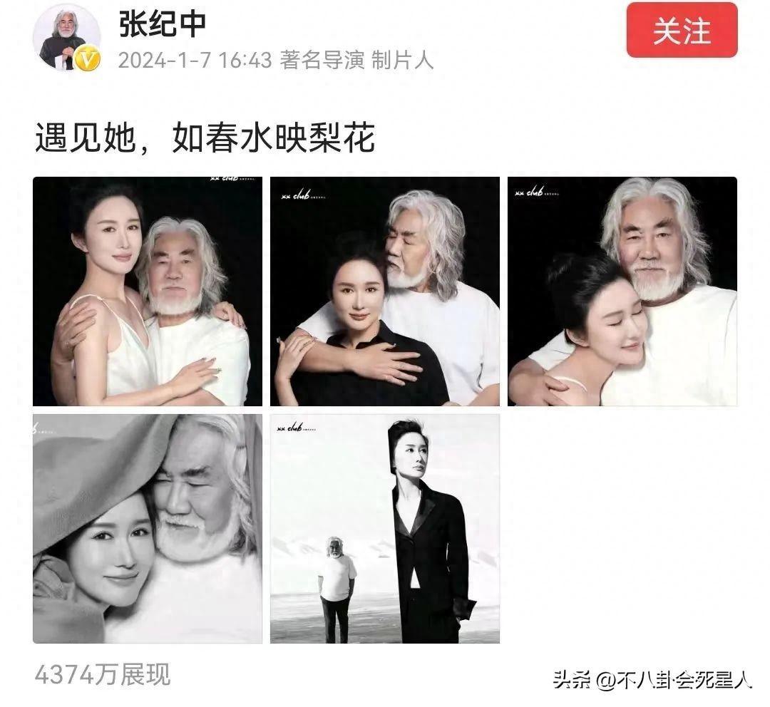 近日,72歲的張紀中也趕了個時髦,最新發布的文案配上了“遇見她,如春水映梨花”的熱梗,與小31歲的嬌妻杜星霖大秀恩愛,曬了多張親密合照。