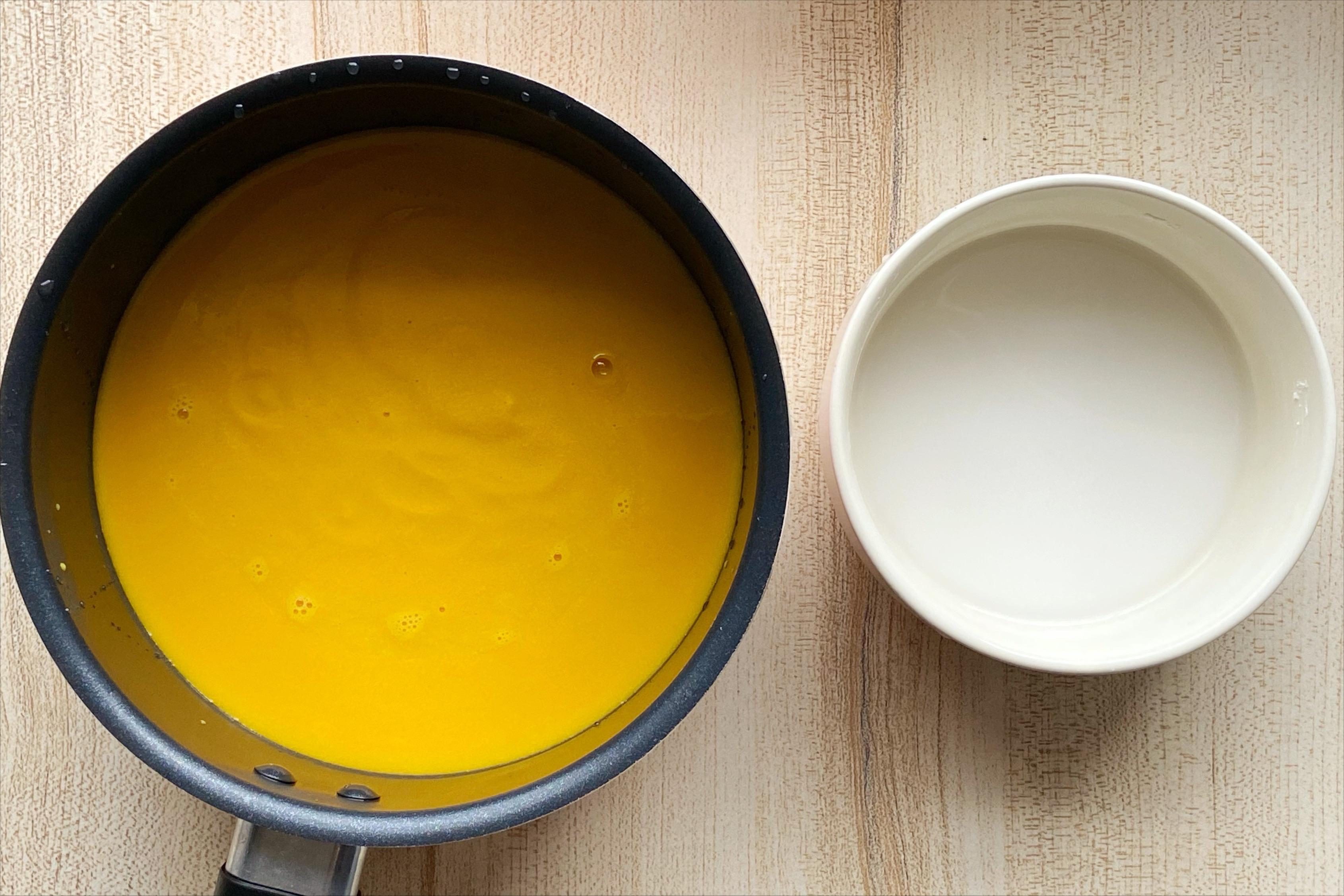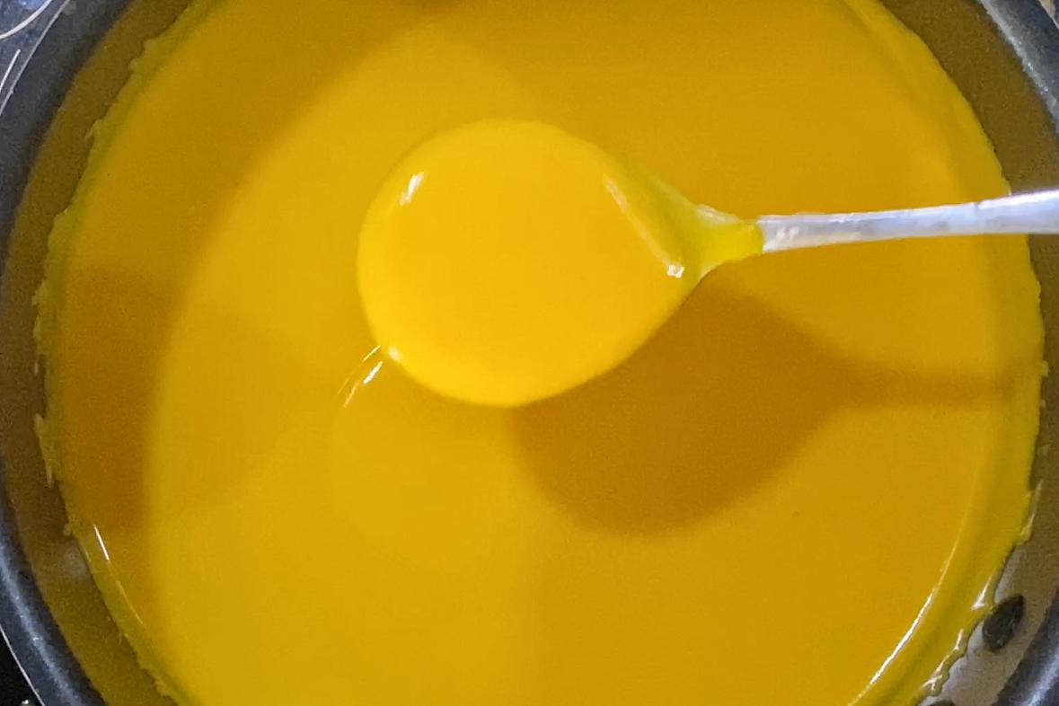 5、將制好的南瓜糊過篩到鍋中,加入糯米粉漿,小火邊煮邊攪拌;