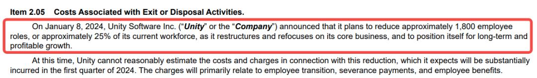 Unity最近宣佈了又一輪裁員,根據Unity向美國證券交易委員會提供的文件來看,本次裁員將涉及1800名員工,佔總員工數量的25%。