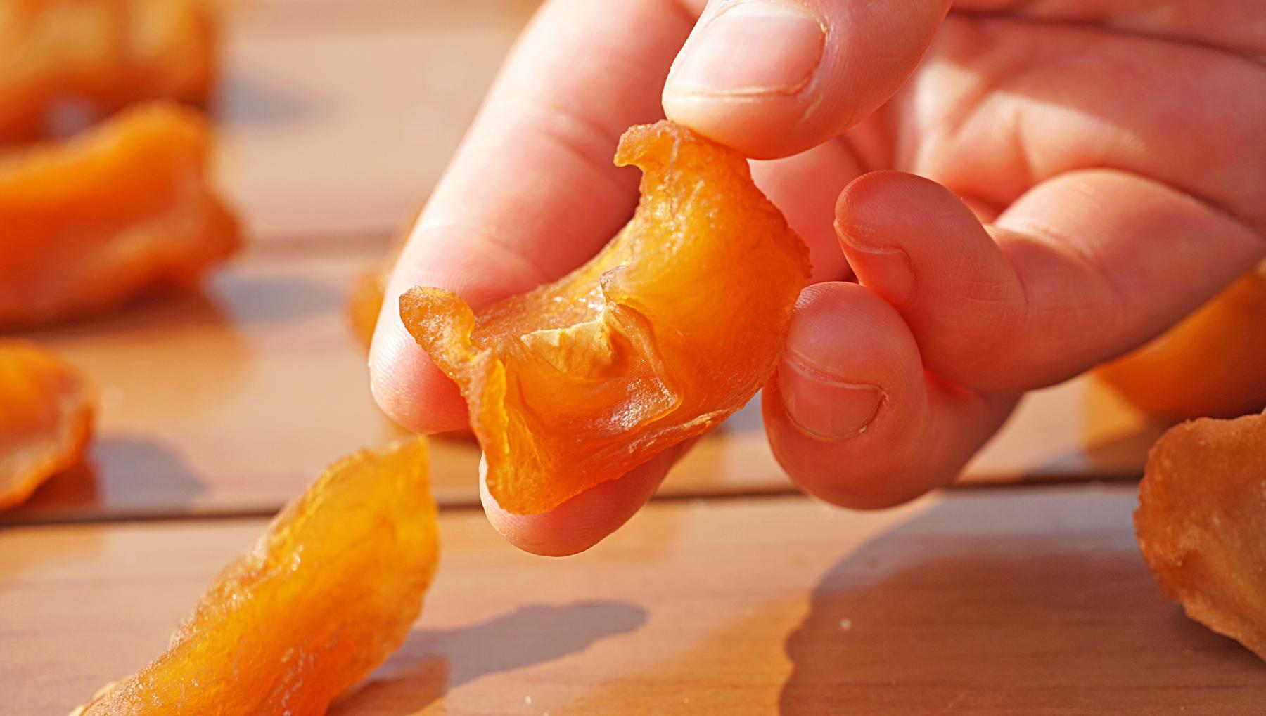 3、最後一遍曬的時候可以根據個人口味來,喜歡喫軟糯一點的,就少曬半天,喜歡喫有嚼勁的,同時還要能存放很久的話,那就還是要曬的更幹一些。
