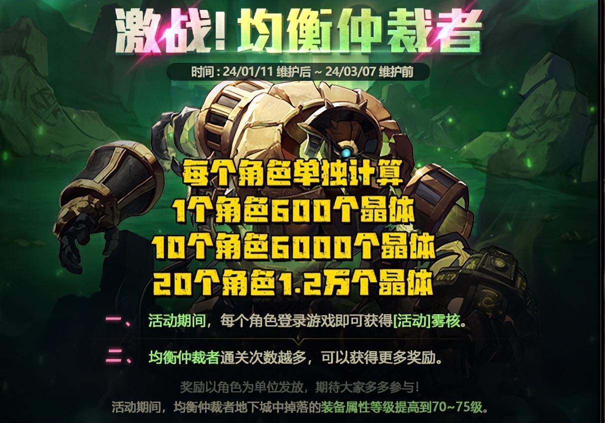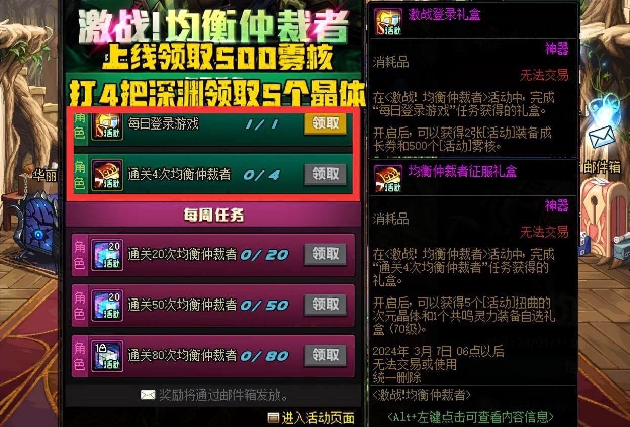 好了,我們要說的重點內容來了,每天上線遊戲即可領取500個霧核(原150個),每通關4次深淵圖,即可領取5個次元晶體(原1個);