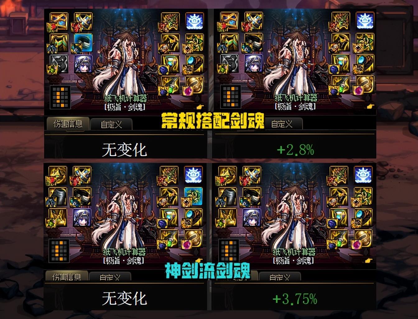 而“神劍流”劍魂3級主動技能可帶來約4%提升,所以即便是相同至尊搭配下,“神劍流”劍魂也要額外高出2%左右,這就是劍魂哥的專屬加成!