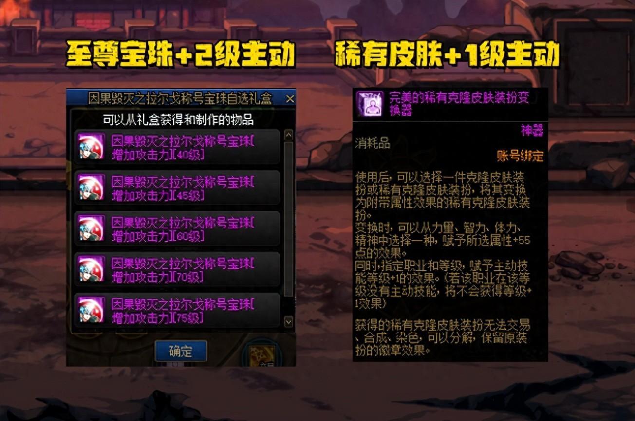 然後再看看“稀有克隆皮膚”和“普通克隆皮膚”的區別,主要是多了「6點屬強+lv40/45/60/70/75/80技能+1級」