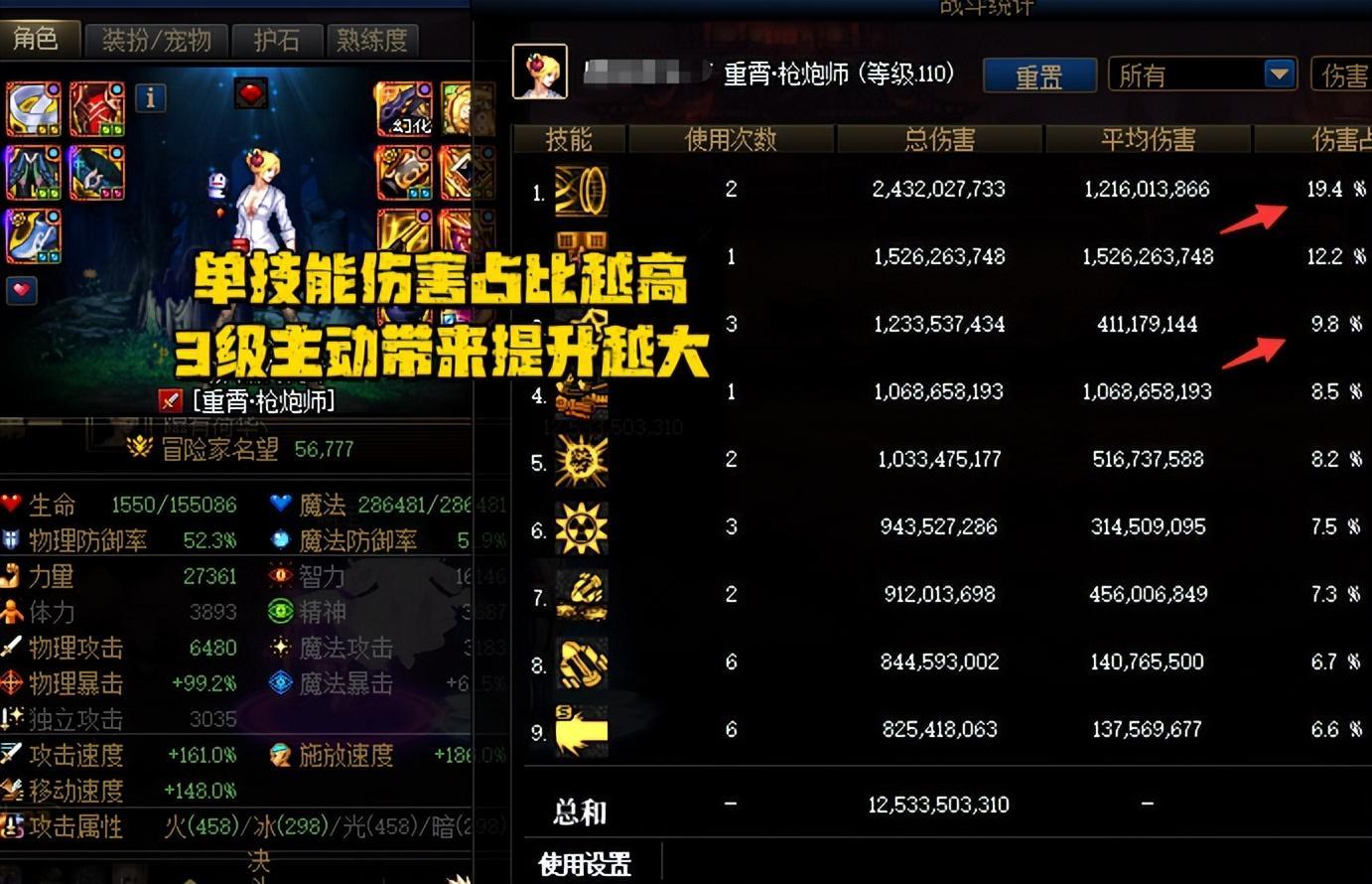 於是乎,就該我們的主角“劍魂哥”登場了,對於大部分職業來說,除了雙覺醒,其他單個技能傷害佔比最多也就15~20%之間,那麼3級主動帶來的提升也就1.5~2%左右。