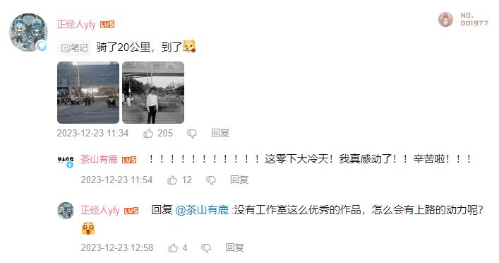 評論區還有一位觀衆曬出了在零下負十度的極端氣溫中,騎行20公里,來到《瓶裝閃電》取景地打卡的照片。