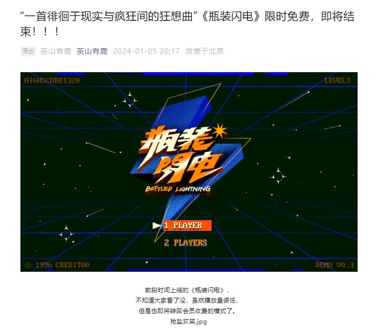 12月,《瓶裝閃電》正式上線後,也有很多觀衆問團隊是不是真的開發過獨立遊戲。