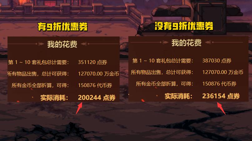 然後【9折優惠券】肯定是多多益善,以下按照9張優惠券計算(加自帶1張7折券剛好買10套),少一張則加40R。