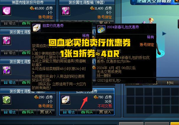 如果打算出售道具回血,那麼一定、一定要先購買【拍賣行優惠券】,可以節省許多手續費;