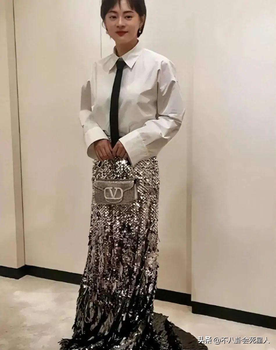 當天孫儷穿着一件白色襯衫連衣裙,是時尚的“下衣失蹤”穿搭,短髮也紮起來,依然保留着齊劉海,但不知道是不是當天的妝容和燈光不太友好,孫儷的生圖看起來狀態並不算好。