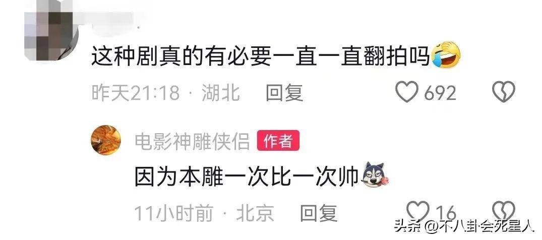 看了新版《神鵰俠侶》的預告後,許多網友都不看好,覺得太拉胯了,並且翻拍《神鵰俠侶》已經不是第一次了,故事都拍爛了,覺得完全沒必要。