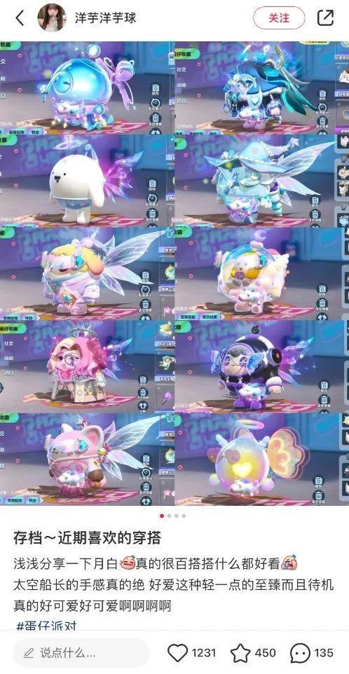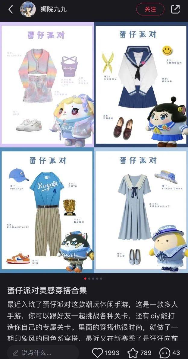 大量普通玩家同樣樂於分享自己的日常穿搭,這既是一種在遊戲外結交志同道合“蛋搭子”的途徑,同時也是爲自己滿意的作品留念。以《蛋仔派對》當下的影響力來看,新生代玩家的穿搭啓蒙,可能也將由古早的“4399芭比換裝”變爲“蛋仔穿搭教程”。