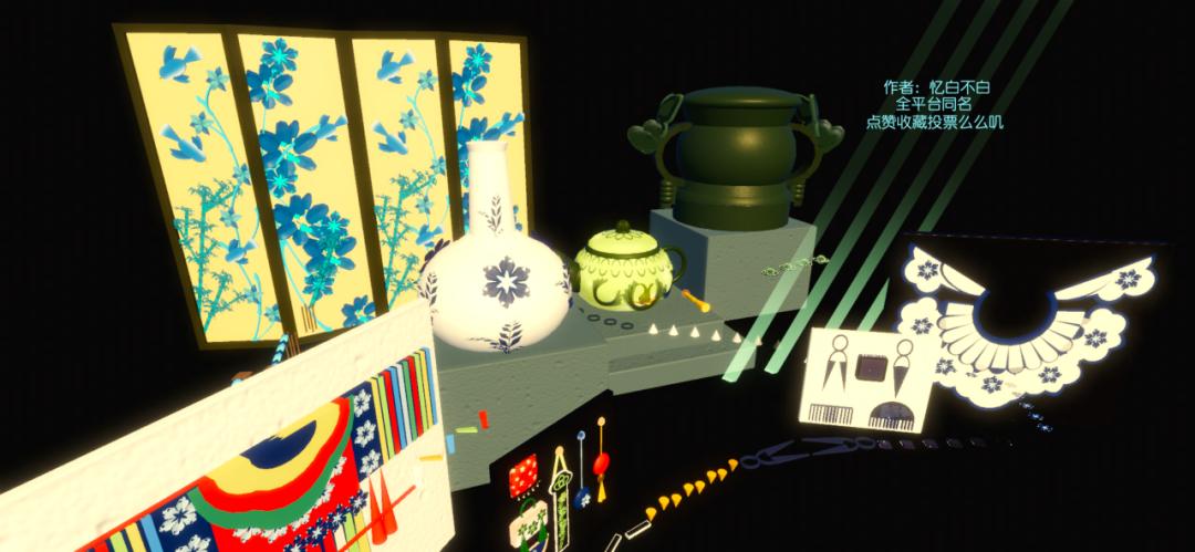 例如官方最近對明星工匠“憶白不白”的專訪,就特別提到他的代表作《逃出大英博物館》和《傳承中醫up》。前者靈感來源於火爆一時的同名短劇,在這張地圖中,玩家能夠近距離欣賞絕美戲服、點翠屏風、青花瓷器、纏枝紋薄胎玉壺、西周康候簋、清代雲肩共六件流落在外的珍貴文物,瞭解與它們有關的歷史,並嘗試將其帶回家鄉。