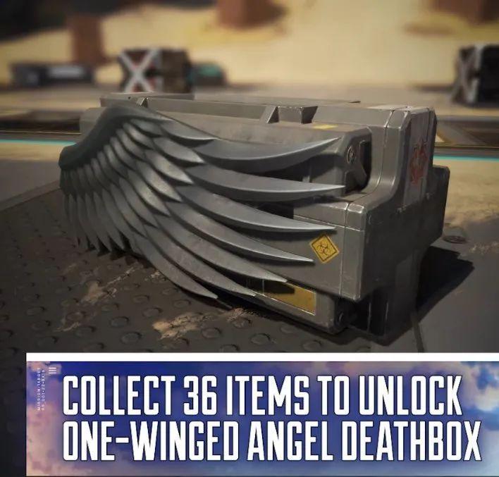 集齊36種戰利品的最終獎勵,是死亡之箱的皮膚“片翼天使”。這個箱子以FF7人氣反派薩菲羅斯作爲外觀主題,是《Apex英雄》首個應用到戰利品盒子上的皮膚。