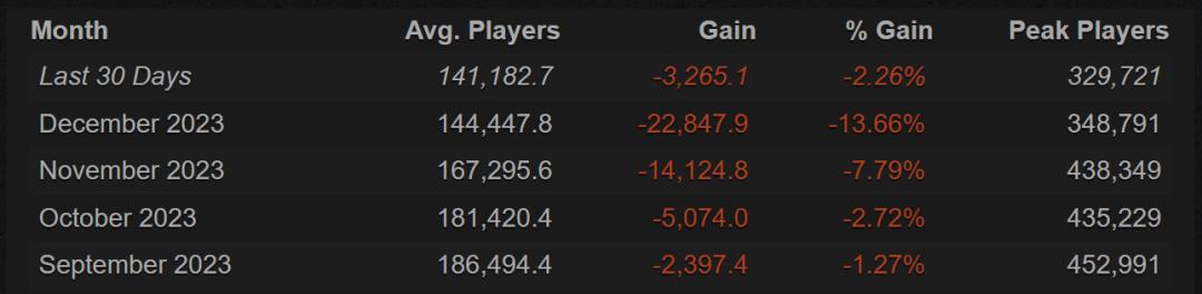 誠然,聯動商品的定價跟遊戲性無關,短期內也不會影響到佔據玩家羣體多數的微氪和零氪黨。不過,根據Steamcharts網站數據,《Apex英雄》在這幾個月裏的玩家數量持續流失,正需要一次成功的聯動活動,來挽回在線人數、拯救商業收入。