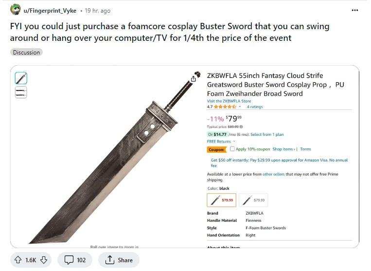 買把毀滅劍模型出克勞德cos,更是綽綽有餘