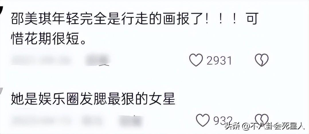 因爲邵美琪的近照和過去對比鮮明,不少網友留言覺得可惜,還有人說她是娛樂圈發腮最狠的女星。