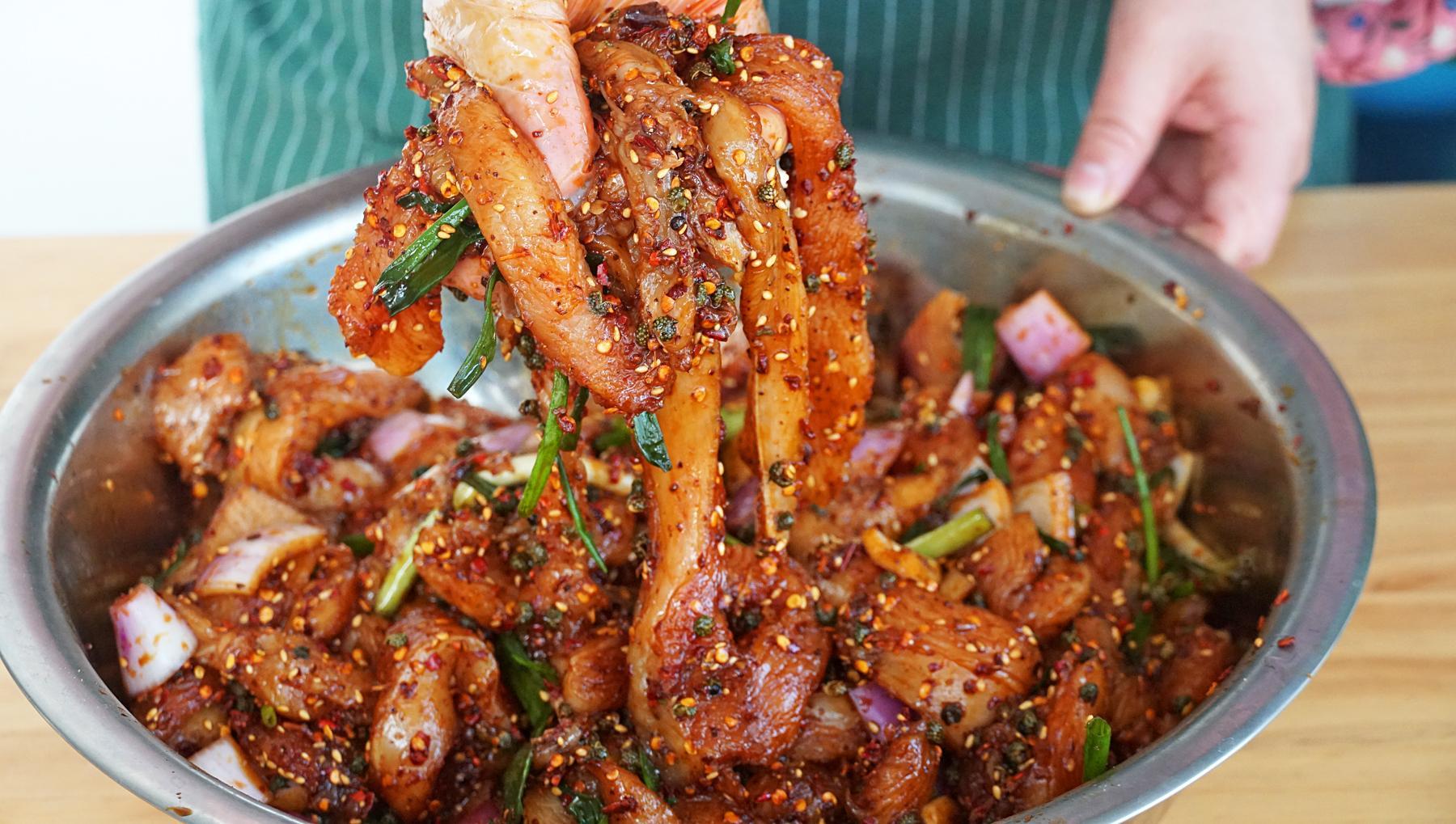 口感微辣微麻,非常的香,撕開看一下,肉質還是非常緊實的。