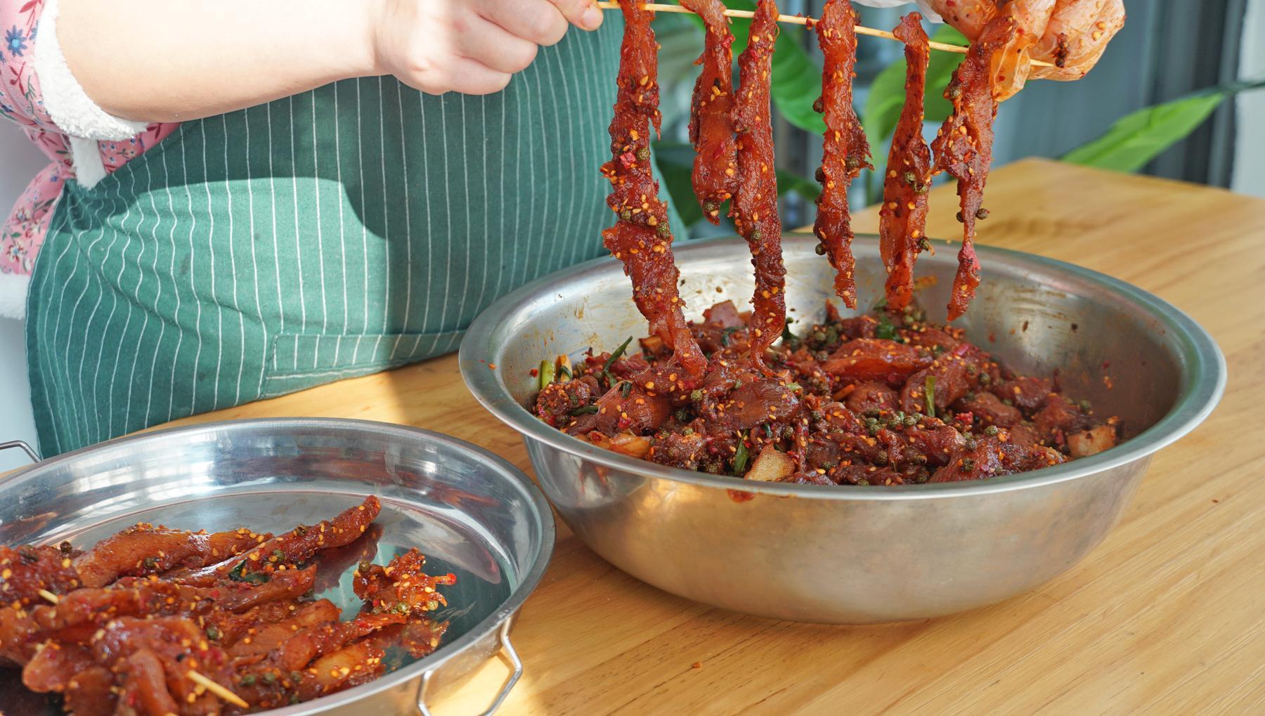 風乾肉只要是經過太陽和風的洗禮,無論是大塊的風乾豬肉,還是小長條的風乾肉條,都只需要放到室外掛上幾天,然後耐心等待美味即可。就拿肉乾來說,無論是豬肉乾、牛肉乾、還是雞肉乾,那都是相當的受歡迎。市場上賣的最多的就是牛肉乾了,各種口味層出不窮,雖然好喫是好喫,但價格的確不便宜啊,就算是自己在家用牛肉做,那價格也是讓人有點心疼呢。