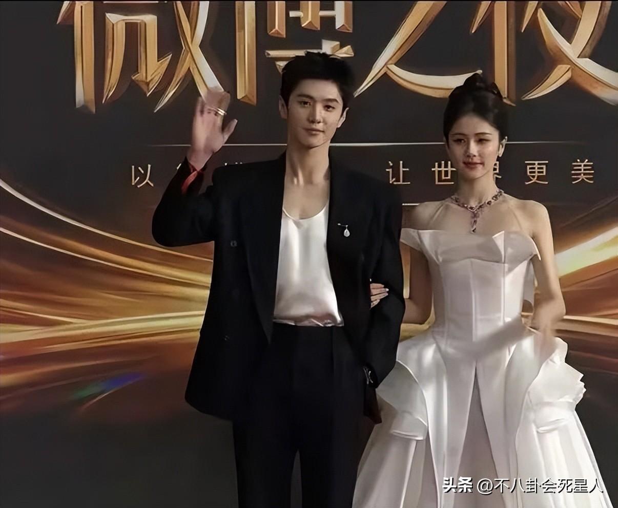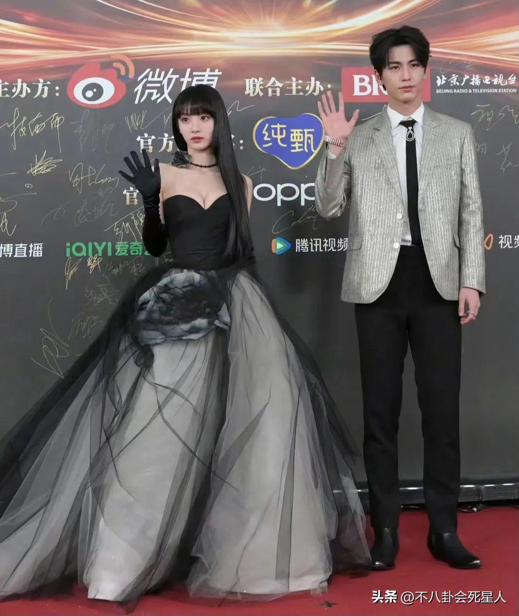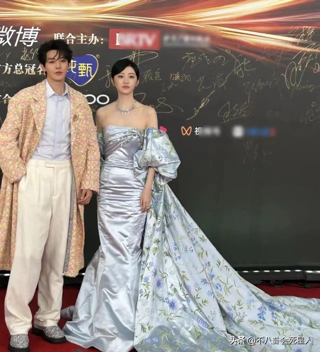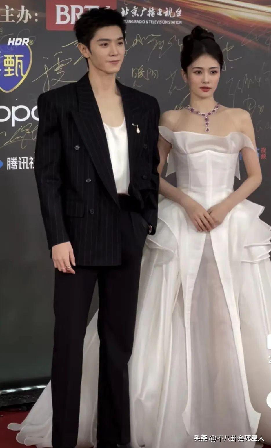 白鹿與陳哲遠一同走紅毯,白鹿將頭髮盤起來,一襲白裙優雅動人。陳哲遠的黑色寬肩衣服,頗有幾分霸總氣質。