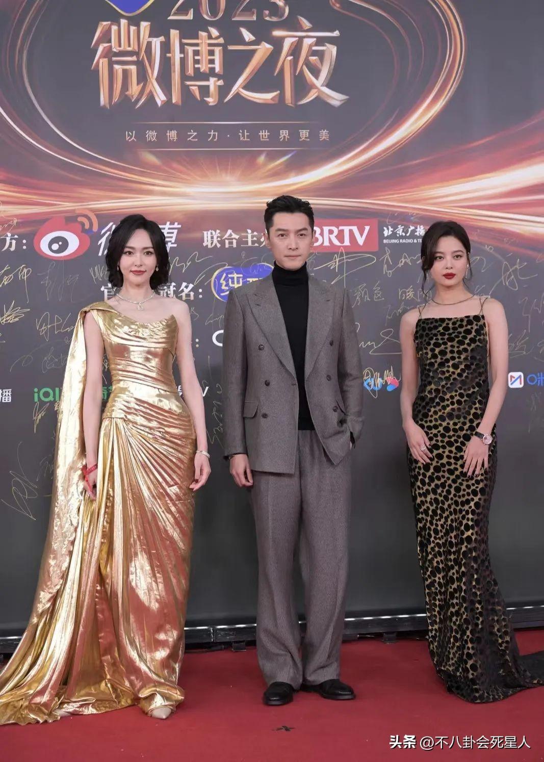 《繁花》劇組一起上場,胡歌西裝革履,精英氣質拉滿。辛芷蕾濃妝豔抹,身穿豹紋,野性又嫵媚。唐嫣金光閃閃,光彩奪目,三位同框,每個人都很耀眼。