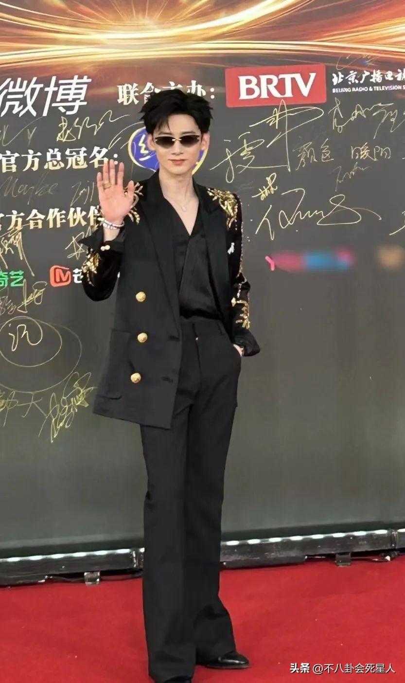 白敬亭戴着墨鏡,身穿黑色西裝,衣服上的金色花紋,彰顯貴氣,不知是不是爲了避嫌,他和宋軼分開走的紅毯。