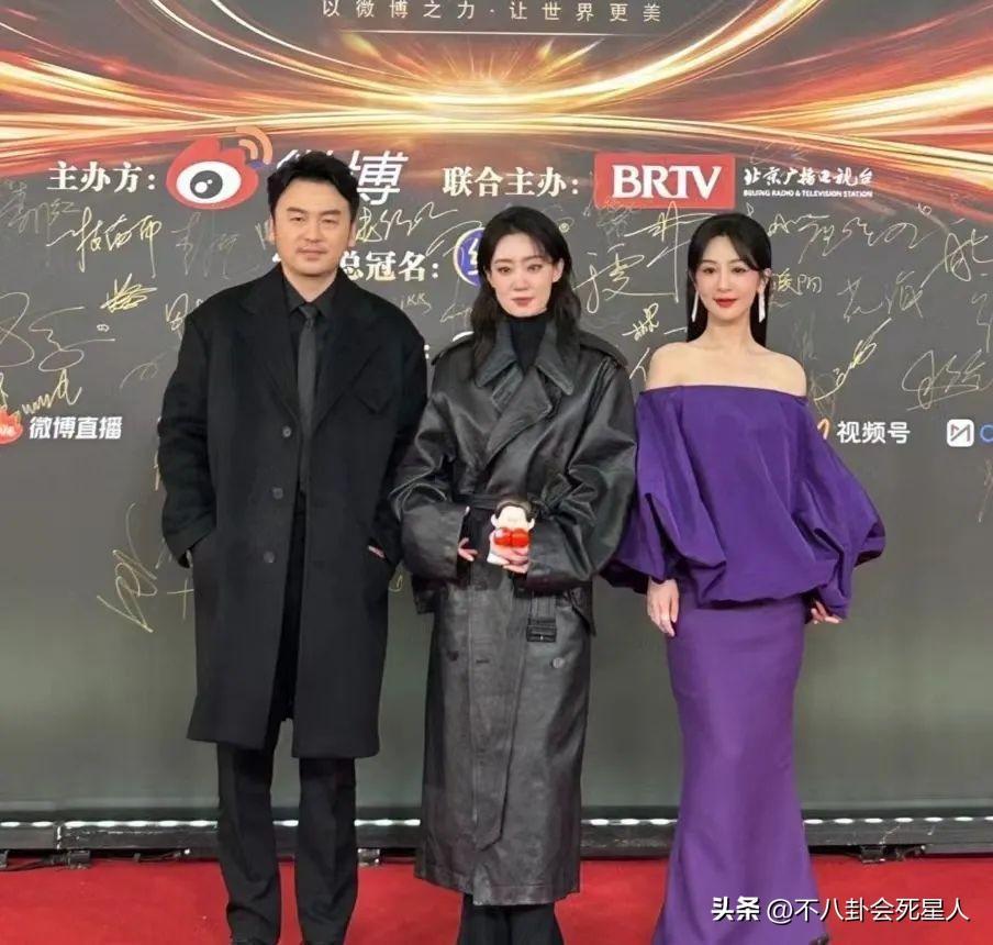 楊紫、張小斐、雷佳音一同亮相,三位都是實力派演員。和兩位女星同框,雷佳音的大頭十分突出。