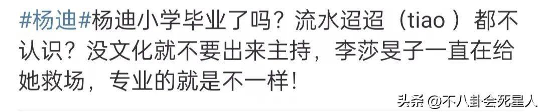 李莎旻子反應很快,多次救場,相比之下,一旁的楊迪主持就有點尷尬了,他嘴瓢卡殼,唸錯了話,將李蘭迪主演的新劇《流水迢迢》,念成了“《流水昭昭》”,翻車遭到了羣嘲。