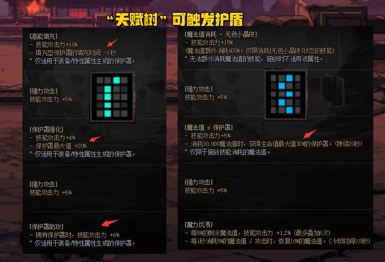 後期可選擇“魔法值天賦”,釋放技能消耗魔法值,就能生成30%護盾,優點是傷害高、缺點是對藍量要求比較苛刻。