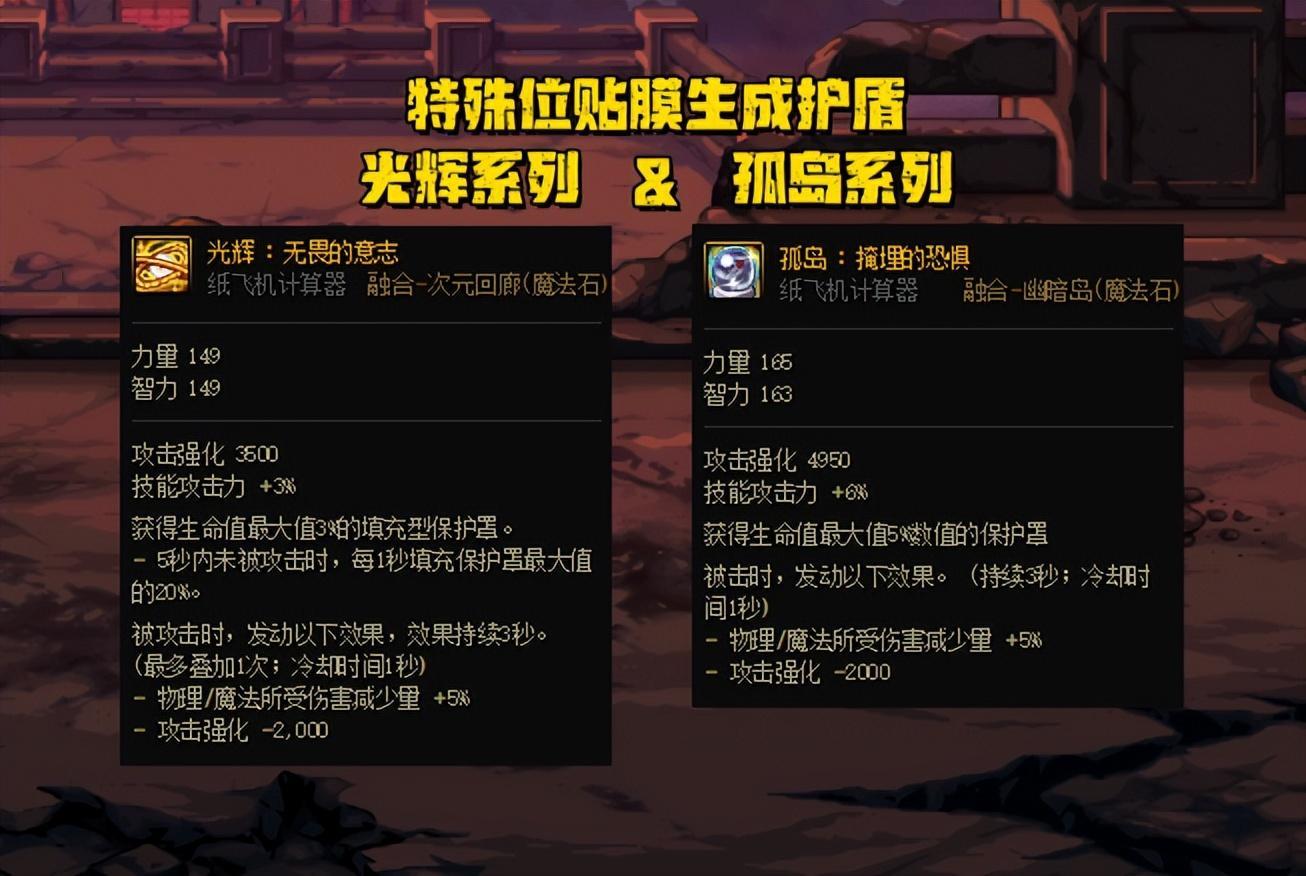 【5】“特殊貼膜”增加護盾,前期可選擇“光輝貼膜”,後期可選擇幽暗島“孤島貼膜”;
