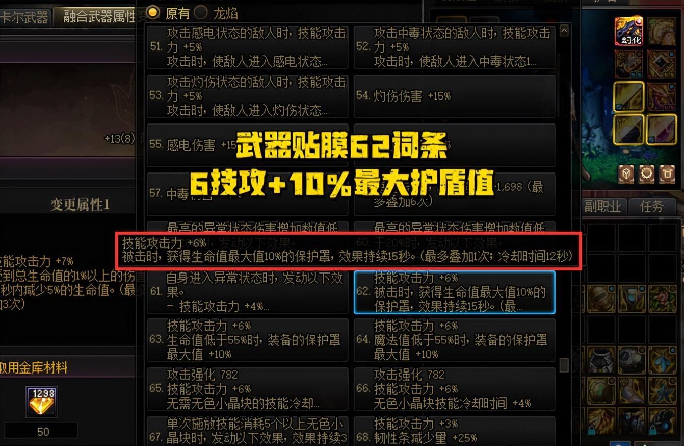 【2】“武器貼膜62詞條”,增加6%技能攻擊力、被擊時獲得生命值最大值10%的護盾!