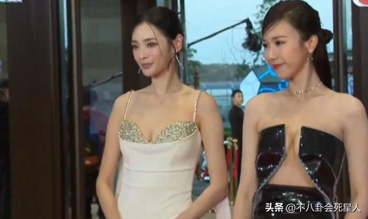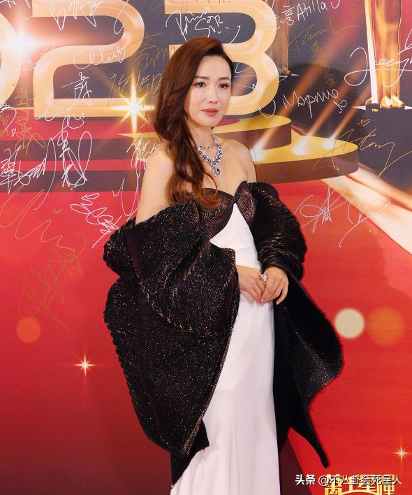 李施嬅的臉部狀態真的保養得很好,抹胸的禮服加披肩的設計,性感中不失優雅,而且很有氣場。
