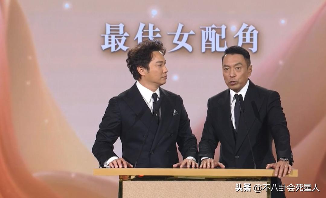 52歲的譚耀文和姜皓文作爲第一組頒獎嘉賓,譚耀文一上來就感慨很久沒有回TVB了,自己曾經也是TVB的“親生仔”,語氣中有幾分心酸。